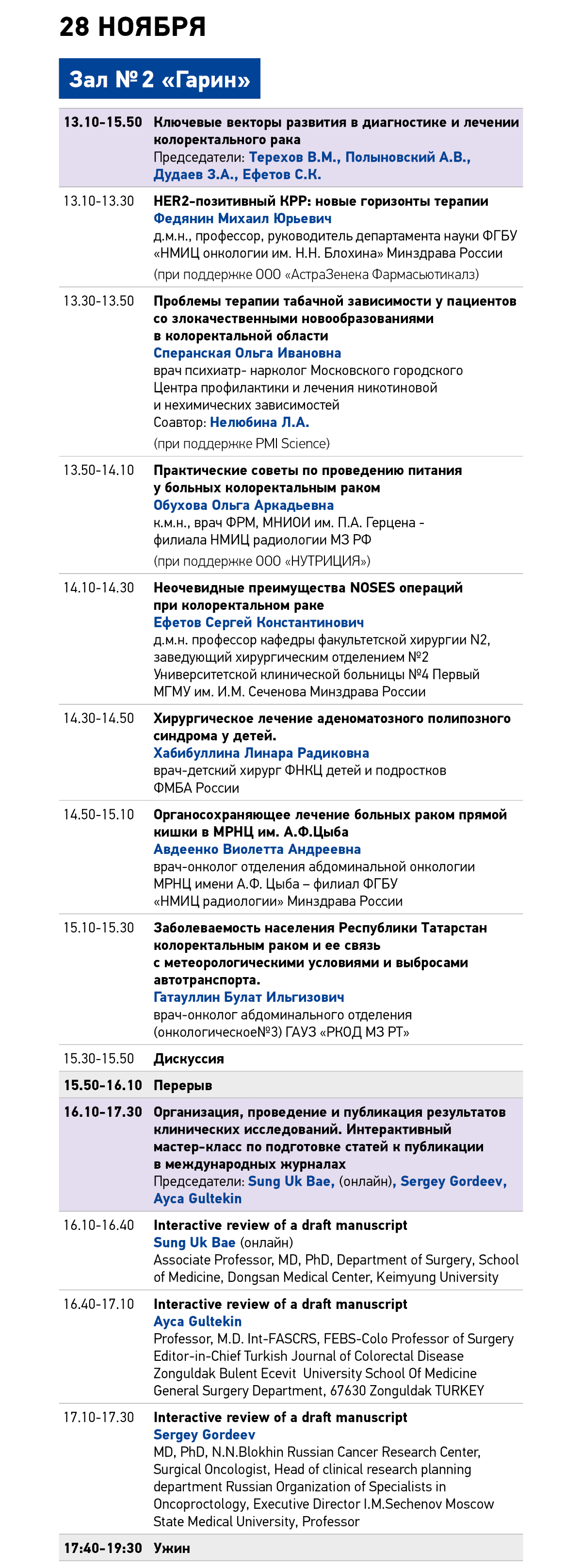 28-29 ноября (основная программа): НМИЦ онкологии им. Н.Н.Блохина